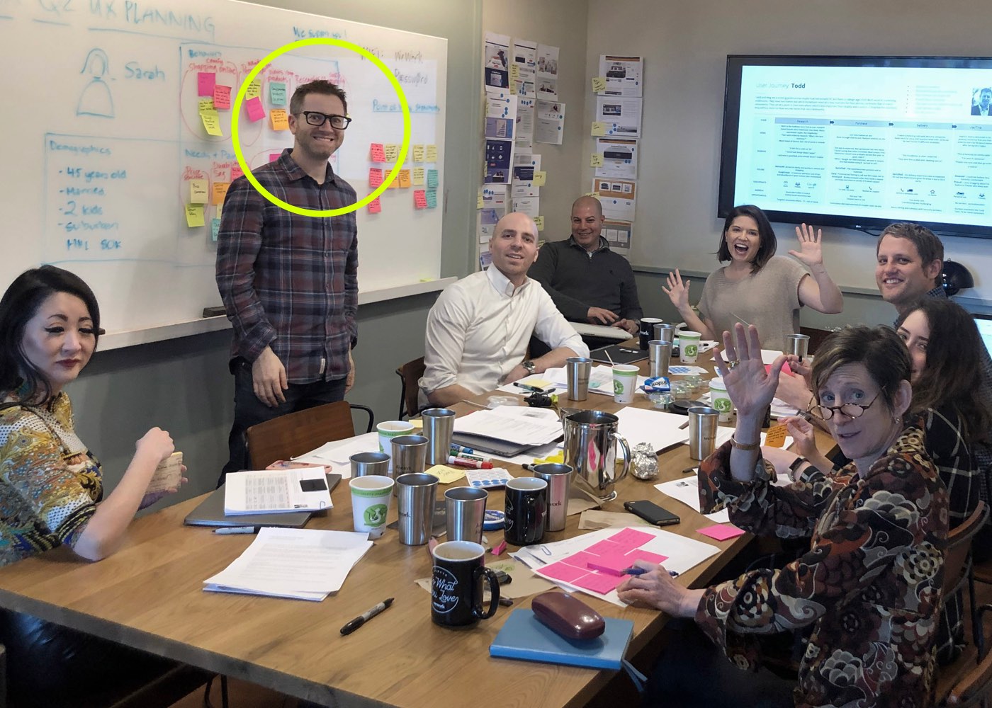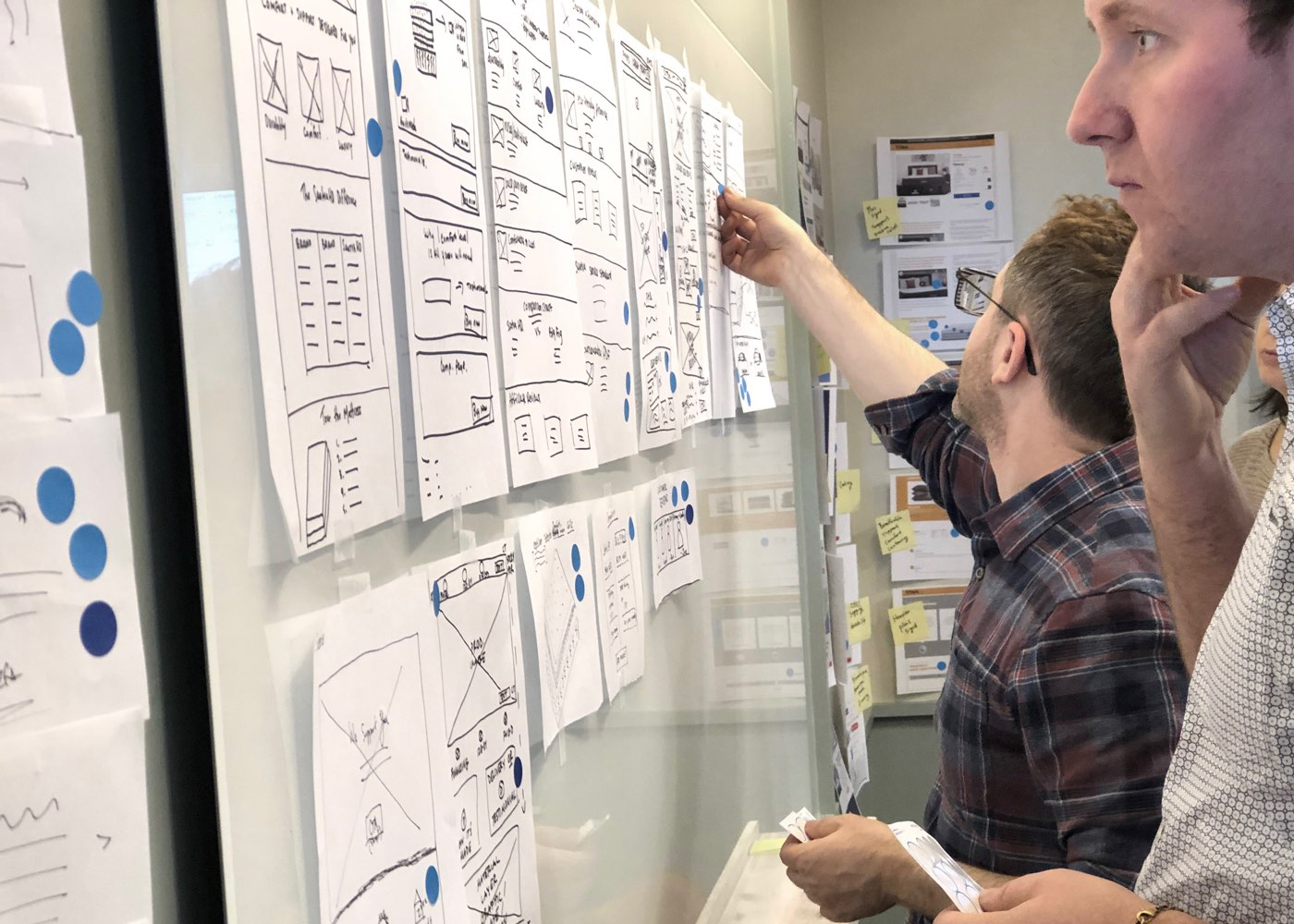 Collaborative whiteboarding and sketching Armed with our user test results, I facilitated a sketching and dot-voting session with stakeholders to come up with the best solutions to try in the next round. That’s me up at the board, in case you were wondering.